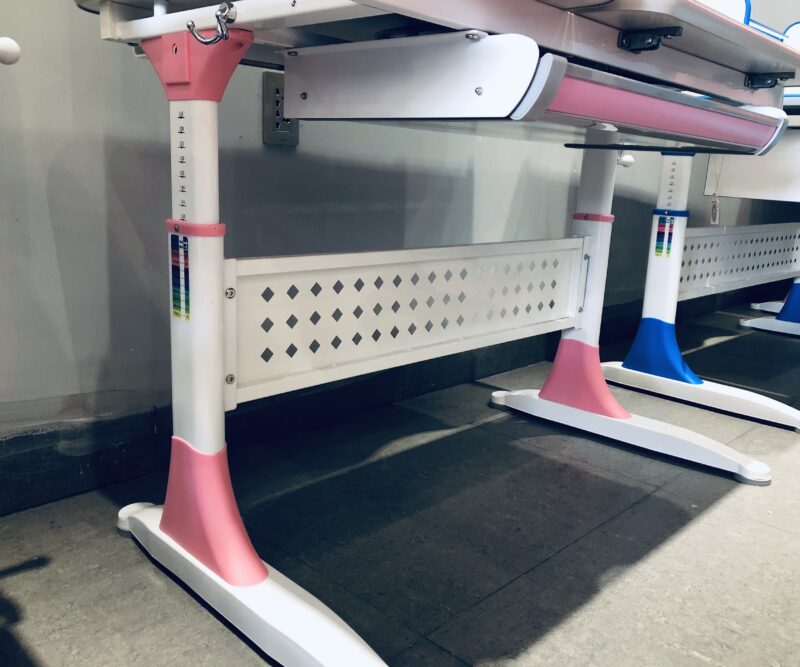 – Chân bàn có thể nâng hạ chiều cao linh hoạt – phù hợp với trẻ ở nhiều độ tuổi và chiều cao khác nhau. – Qua đó giúp trẻ có được tư thế ngồi hợp lý tránh phải cúi quá thấp hay bàn quá cao.