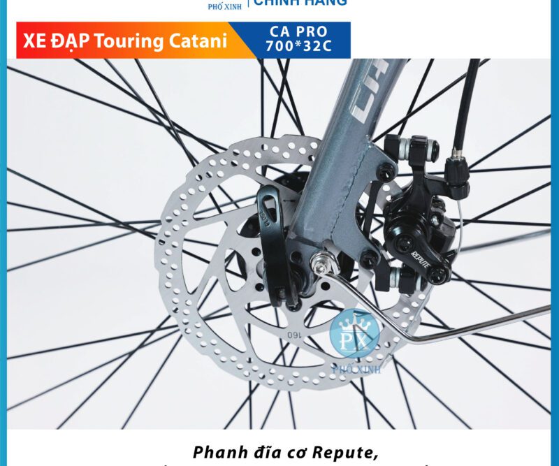 Khác với các loại phanh gôm truyền thống dễ hao mòn và không đảm bảo được hiệu năng phanh khi thời tiết hay địa hình khắc nghiệt. Xe Đạp Touring Catani CA Pro Khung Nhôm được hãng ưu ái trang bị phanh đĩa cơ đến từ thương hiệu Repute đảm bảo hiệu năng phanh vượt trội.